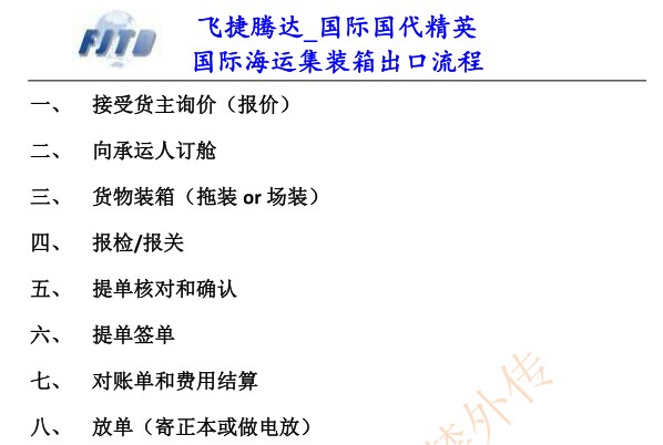 您現(xiàn)在的位置:首頁 >> 物流學(xué)堂 >> 海運學(xué)園>>國際海運集裝箱出口流程