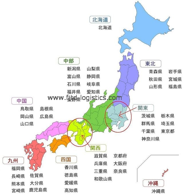 日本根據(jù)地理位置分為日本關(guān)東航線和日本關(guān)西航線。日本關(guān)東航線的主要港口有:Nagoya(名古屋);Tokyo(東京);Yokohama(橫濱)。