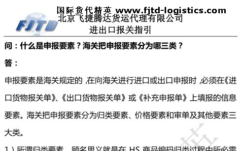 您現(xiàn)在的位置:首頁 >> 物流學(xué)堂 >> 報關(guān)指南>>什么是申報要素?海關(guān)把申報要素分為哪三類?