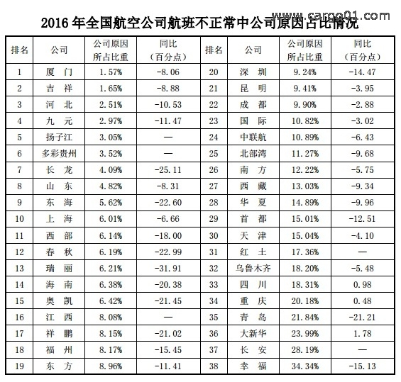 2016年航班正常率顯著提高 航空公司原因延誤占比下降近10個百分點(diǎn)