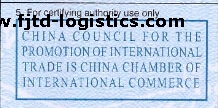 沙特阿拉伯、阿聯(lián)酋、埃及等還要求一般原產(chǎn)地證(貿(mào)促會(huì)簽發(fā))上必須加蓋“中國(guó)商會(huì)章”。由于貿(mào)促會(huì)就是中國(guó)商會(huì),所以加蓋的“中國(guó)商會(huì)章”是這樣的: