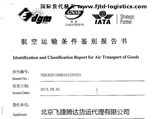 空運(yùn)鑒定是通過專業(yè)的鑒定機(jī)構(gòu)或公司(必須先取得民航局的認(rèn)可資格)進(jìn)行檢驗(yàn)、檢測,由鑒定公司出具《航空運(yùn)輸條件鑒別報(bào)告書》,航空公司和相關(guān)方根據(jù)《航空運(yùn)輸條件鑒別報(bào)告書》判斷是普貨還是危險(xiǎn)品。鑒定公司檢驗(yàn)、檢測后,如果是普貨,就出普貨鑒定;如果是危險(xiǎn)品,就出危險(xiǎn)品鑒定。