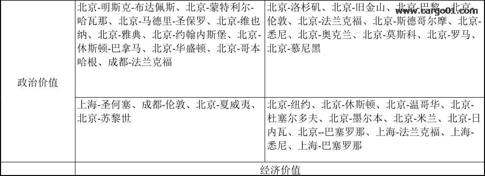 從筆者看來,國(guó)際航線具有經(jīng)濟(jì)價(jià)值和政治價(jià)值雙重屬性,可以用象限圖來分析。