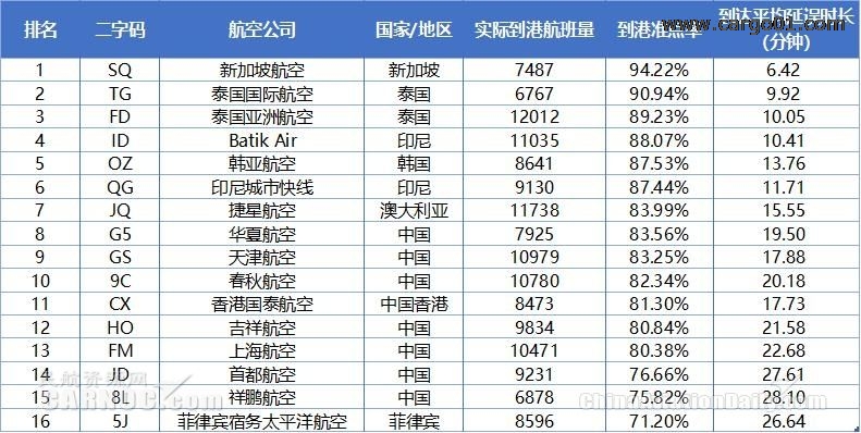 7月亞太區(qū)中型航司到港準(zhǔn)點(diǎn)率排名中,新加坡航空以94.22%的到港準(zhǔn)點(diǎn)率超過泰國國際航空,重回準(zhǔn)點(diǎn)率榜單首位,其到達(dá)平均延誤時(shí)長(zhǎng)6.42分鐘。中國大陸地區(qū),華夏航空憑借83.56%的到港準(zhǔn)點(diǎn)率排在第8位,成為亞太區(qū)中國大陸最準(zhǔn)點(diǎn)的中型航空公司。