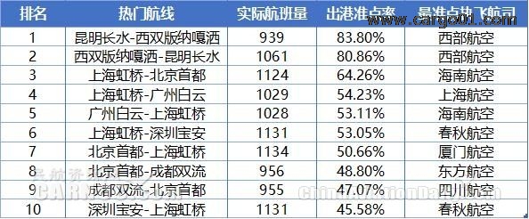(七)中國大陸:熱門航線準(zhǔn)點(diǎn)率TOP10