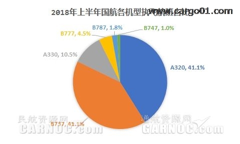 2018年上半年,國航A320和B737執(zhí)飛航班占國航執(zhí)飛航班總量的82.2%,二者執(zhí)飛航班占比相當(dāng),均為41.1%,相比去年同期,A320執(zhí)飛航班占比下降0.5%,B737執(zhí)飛航班占比無明顯變化。