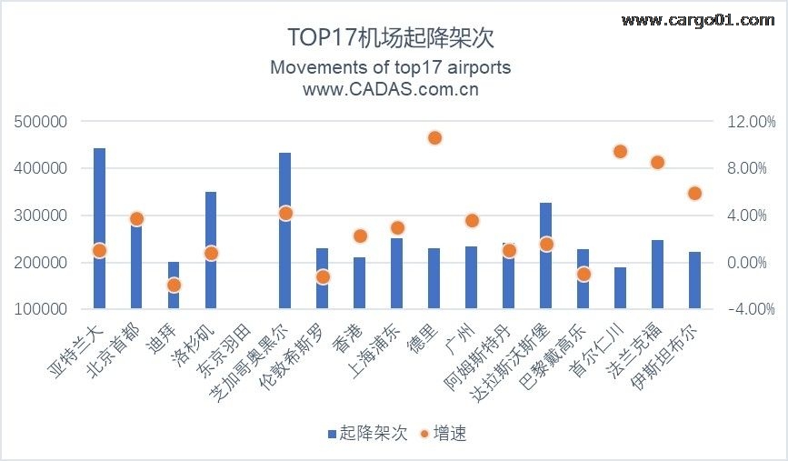 從起降架次方面觀察,德里機(jī)場(chǎng)飛機(jī)起降架次同樣增速最快,同比增長(zhǎng)10.66%。旅客吞吐量最高的亞特蘭大機(jī)場(chǎng)的起降架次最多,其次為芝加哥奧黑爾機(jī)場(chǎng)。德里機(jī)場(chǎng)旅客吞吐量初步排名上升6位最多,由2017年第16位躋身第10位。同樣增速較快的首爾機(jī)場(chǎng)排名也由第19位上升第15位。而伊斯坦布爾機(jī)場(chǎng)旅客吞吐量同比增速達(dá)12.75%較高,但其旅客吞吐量排名由第15位下滑至第17位。法蘭克福機(jī)場(chǎng)旅客吞吐量排名由第14位下滑至第16位,巴黎戴高樂(lè)機(jī)場(chǎng)由第10位下滑至第14位,北京首都機(jī)場(chǎng)、香港機(jī)場(chǎng)、上海浦東機(jī)場(chǎng)仍保持2017年排名,分別位居第2、8、9位,廣州機(jī)場(chǎng)則由第13位上升第11位。通過(guò)觀察單機(jī)承運(yùn)人數(shù)方面,迪拜機(jī)場(chǎng)的單機(jī)承運(yùn)人數(shù)最高,其次為首爾機(jī)場(chǎng)、香港機(jī)場(chǎng),可以看出這些機(jī)場(chǎng)對(duì)時(shí)刻的利用更充分(時(shí)刻發(fā)揮更大“效益”)。