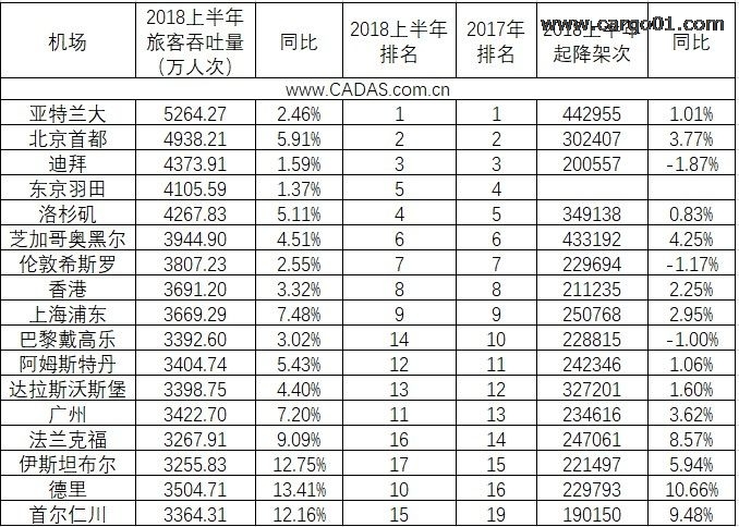 上半年全球前15機(jī)場(chǎng)排名出爐